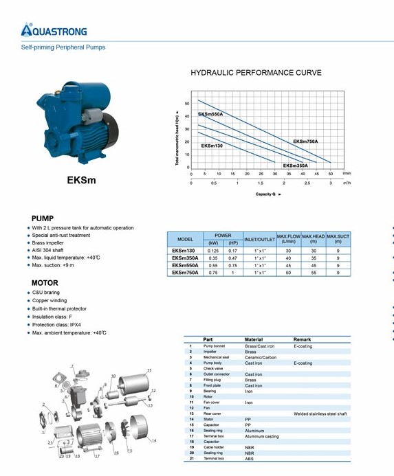 Bomba Automatica 0,75HP - 220V Marca Aquastrong