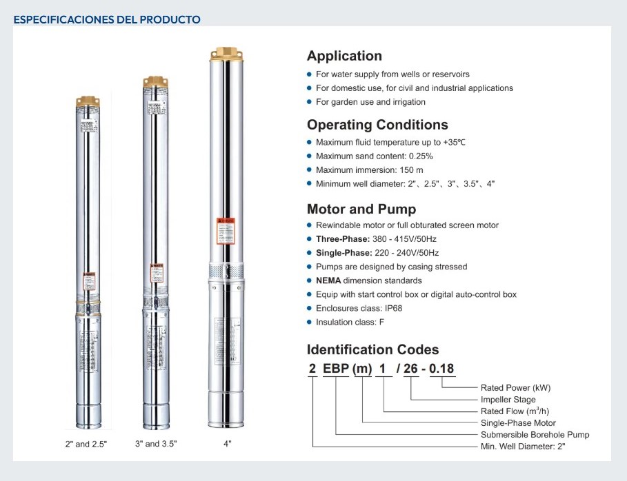 • Aplicaciones: Riego profundo, bombeo industrial, sistemas de presión.